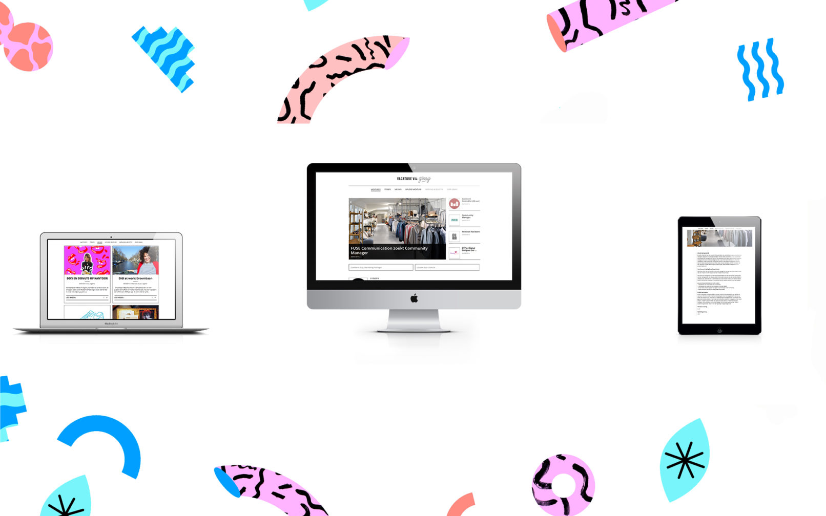 Op dit vernieuwde platform vind je natuurlijk nog steeds de tofste vacatures, maar vanaf 1 april ook dagelijks nieuwe artikelen met sollicitatie tips, columns, “vermaak” op de werkvloer, een kijkje binnen bij de leukste bedrijven en nog veel meer. Daarnaast volgt spoedig een uniek in house ontwikkeld “matching-systeem” waardoor bedrijven en werkzoekenden elkaar dankzij Vacature Via Ginny nog makkelijker kunnen vinden! Met in het achterhoofd de wens vanuit Ginny om het minimalistische design van de voorgaande website te handhaven, zijn wij meer dan tevreden met het eindresultaat!